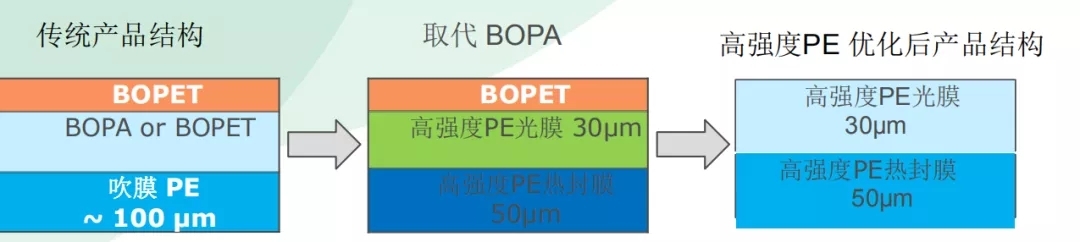 廣東威孚公司根據(jù)市場需求,已研發(fā)出高強度PE光膜、高強度PE熱封膜、高強度PE消光膜等產(chǎn)品。同時威孚公司還優(yōu)化該產(chǎn)品的熱封性能及結(jié)構(gòu)設(shè)計,擴寬起封區(qū)間溫度,能充分提高生產(chǎn)效率,材質(zhì)一體化, 響應(yīng)環(huán)保可回收要求。